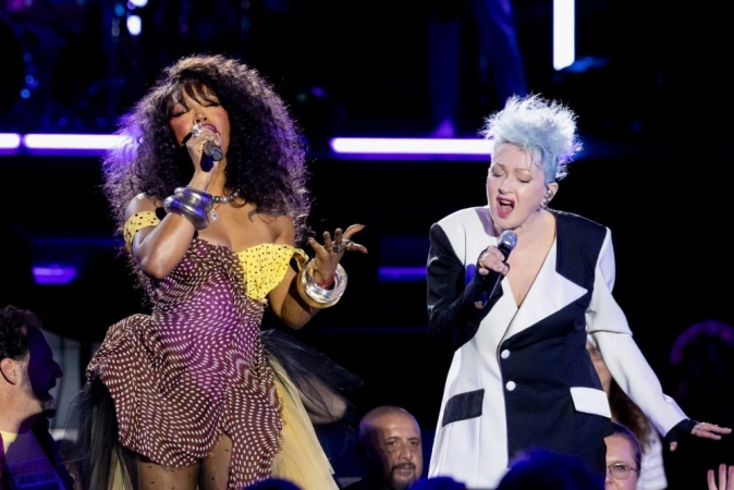 Lauper's signature, storytelling song introductions remain a central element, where she shares anecdotes about her upbringing and feminist ideals. While these longer monologues might test the patience of casual viewers, they offer dedicated fans a richer understanding of her unique artistry. Her solo segments blend timeless hits with nostalgic deep cuts; the pleasure-anthem "She Bop" remains a potent crowd-pleaser four decades on, and "The Goonies 'R' Good Enough" is delivered with joyful reverence, complete with reaction shots from the film's original stars, Corey Feldman and Martha Plimpton.
